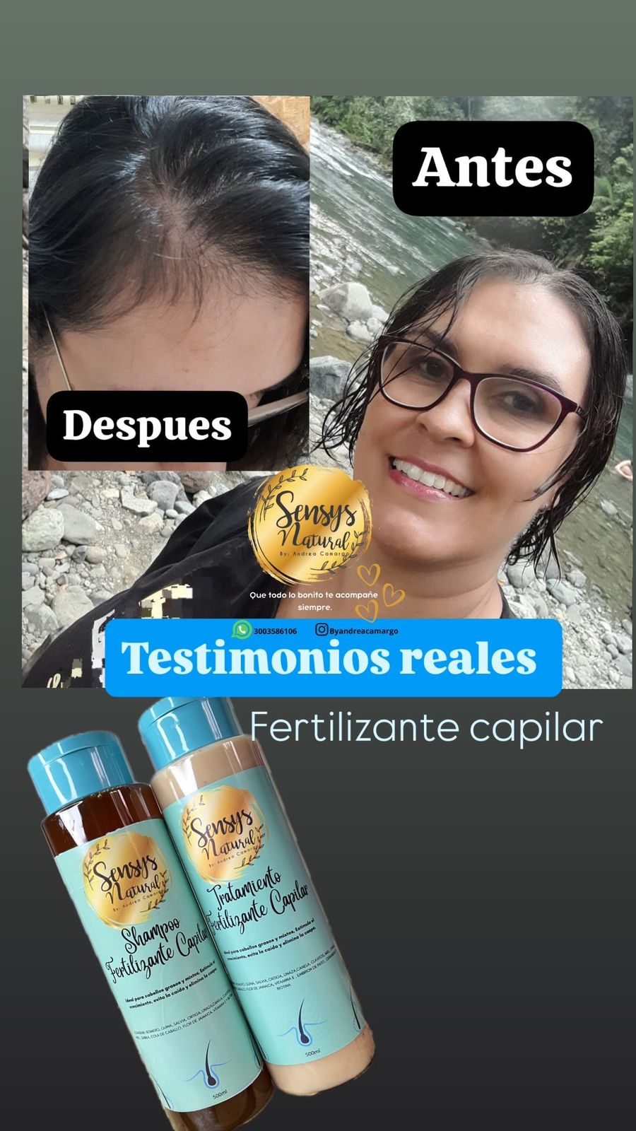 Soy Andrea Camargo, creadora de Sensys Natural, una marca nacida en Barranquilla junto a mi familia y con un propósito muy claro: devolverle vida, fuerza y brillo al cabello de forma natural. 🌿